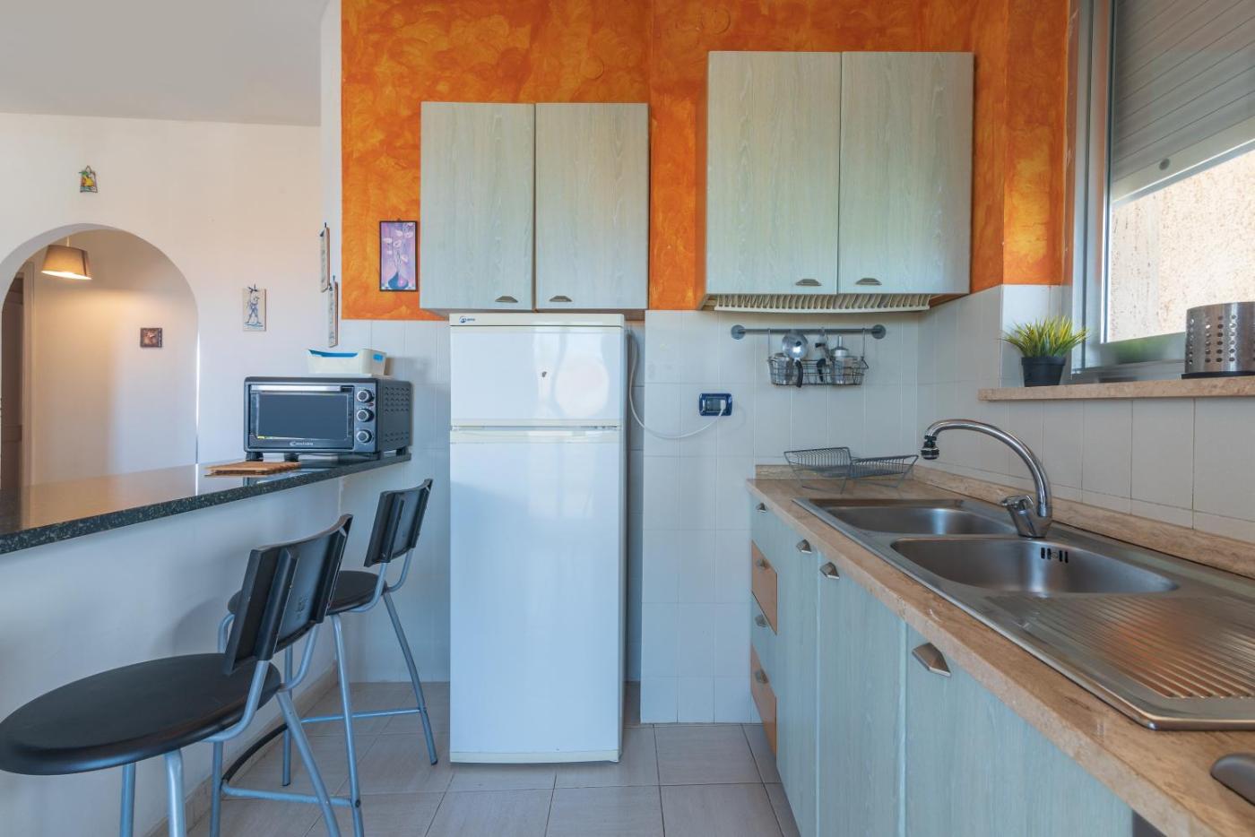 Questa casa vacanze con aria condizionata comprende 2 camere da letto, un soggiorno, una cucina con utensili, forno e macchina da caffè, e 2 bagni con doccia edi cortesia. Presso questa casa vacanze troverete asciugamani e lenzuola in dotazione.